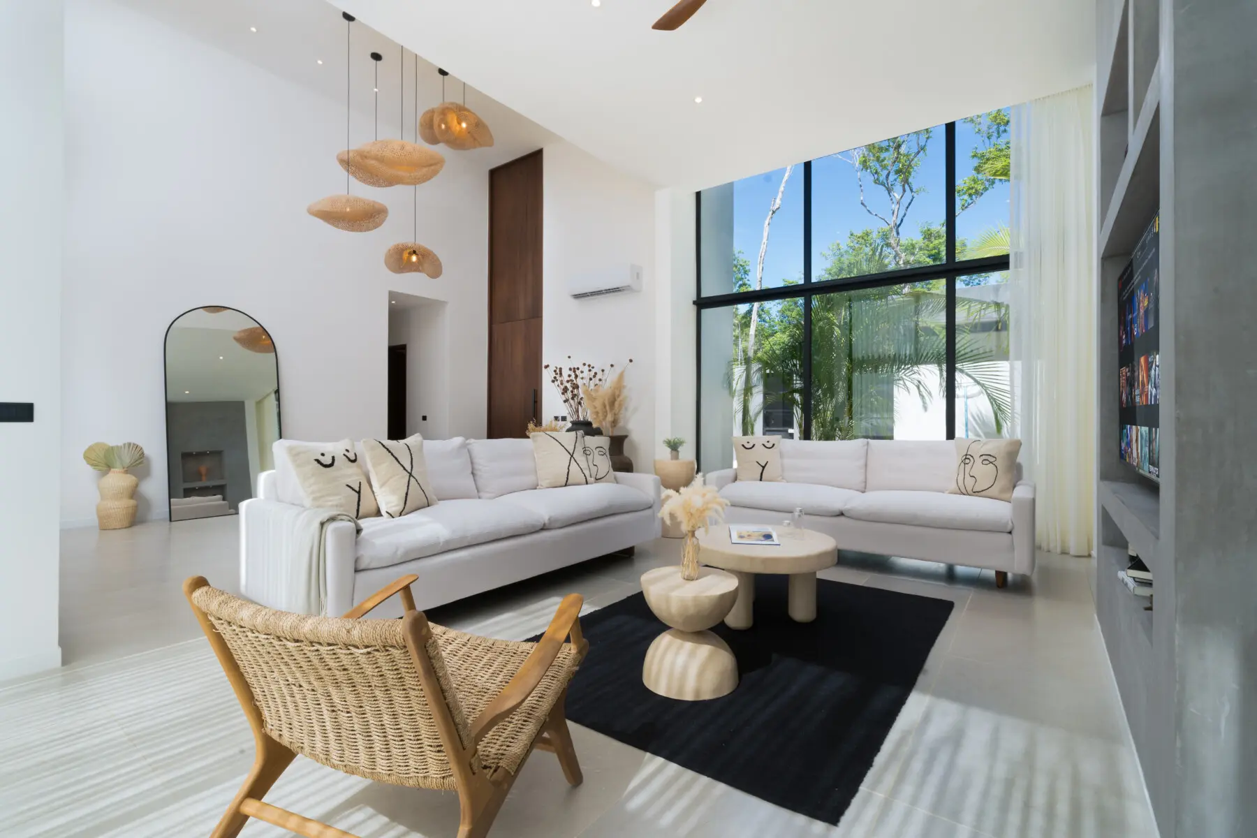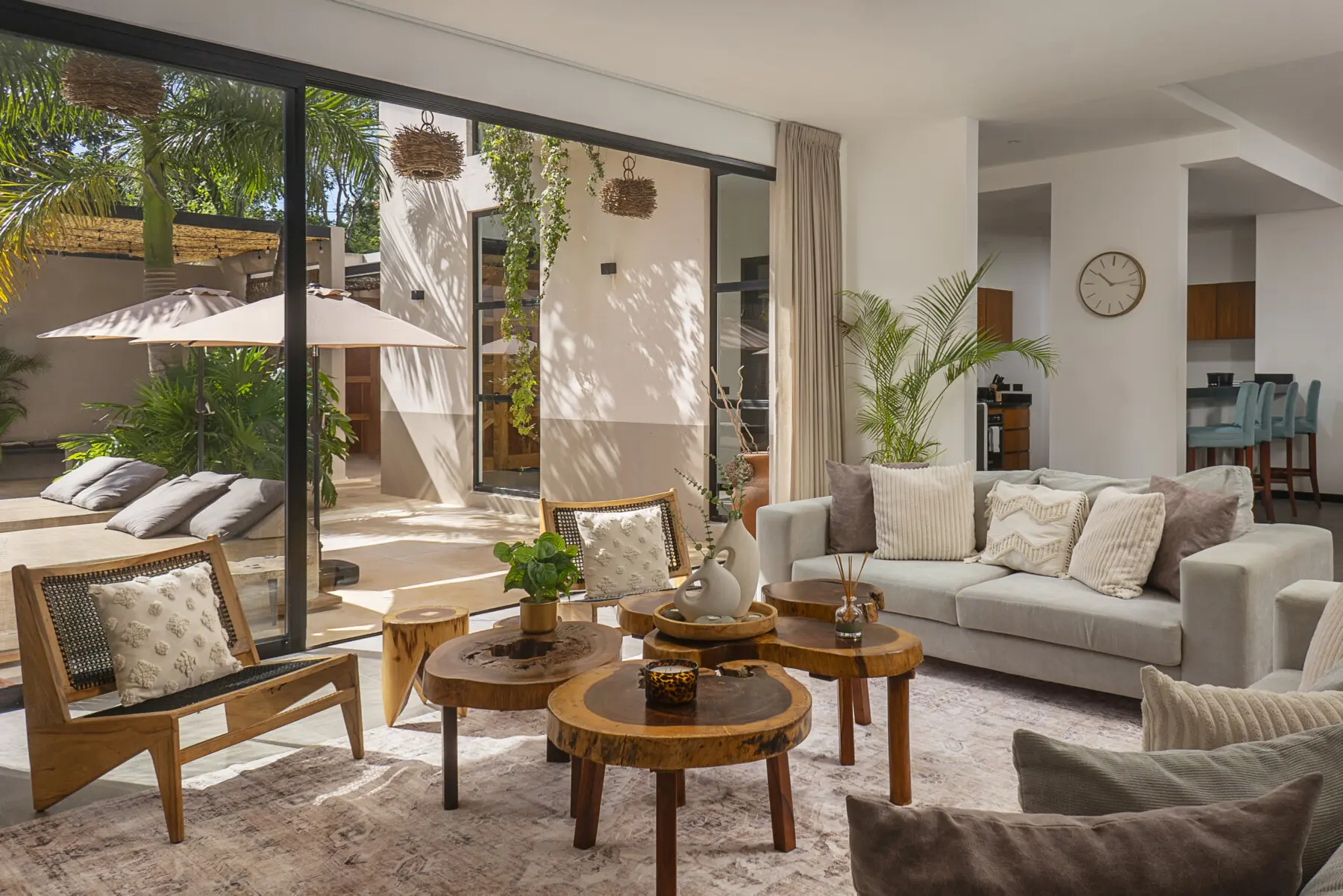 Interiors reflect a calm, tropical aesthetic that blends into the surroundings—inviting, relaxed, and easy to live in throughout your stay.